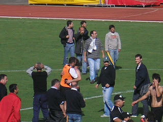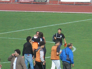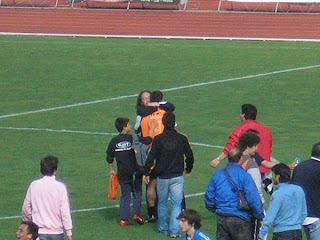 O Academico de Viseu encontrou aquela pontinha de sorte que muitas das vezes lhe tem faltado. Tinhamos desde o inicio do campeonato, os jogadores mais experientes de quase toda a 3 Divisao e isso dava-me motivos de sobra para acreditar nesta equipa. E assim foi, aconteceu. Li alguns comentarios ha algumas semanas atras onde falavam mal do treinador, que este ou aquele jogador nao era para o Academico, mais isto e mais aquilo que todos nos sabemos. O que escrevo agora nao e de forma nenhuma um reparo a quem escreveu esses comentarios ate porque compreendo e ja o disse aqui muitas vezes que todos queremos ganhar e ninguem gosta de perder. Porem, de que serviu falar mal deste ou daquele se no final o clube atingiu os objectivos? De que serviu criticar o presidente e treinador do Anadia na entrevista a FPF? Coitados, eles estavam ate melhor posicionados para subirem de que nos...! Era uma pretensao legitima...depois foram alguns "detractores" aqueles que diziam que afinal o Aacdemico nao tinha subido. E afinal...era so lerem os regulamentos. O campeonato e uma prova de regularidade. Quem diria que o Tondela subia de divisao, ganhava o grupo C quando na 1 fase o clube andou pelas ruas da amargura? Portanto amigos academistas, vamos festejar muito. Este clube como disse na outra versao, deu-me muitas alegrias e tambem muitas tristezas. Eu ja estava desabituado destas "andancas" mas foi bom reviver o passado. Agora coloquem neste blog mais fotos do Rossio e se possivel tambem uns videozitos! Ja agora, nunca o fiz, mas e merecida esta pequena e singela homenagem que quero fazer aos responsaveis da MAGIA DO FUTEBOL. Voces amigos, foram durante todo o campeonato, mas especialmente nesta ultima fase, os maiores animadores e impulsionadores que o clube podia ter. Voces fizeram parte integrante e quase directa (so faltou marcarem um golito) desta bonita festa pela qual o nosso clube passou esta semana. Foram tambem por diversas vezes o meu "porta-voz" daquilo que eu pensava e dizia. Obrigado por tudo isso. CARLOS FERREIRA TORONTO