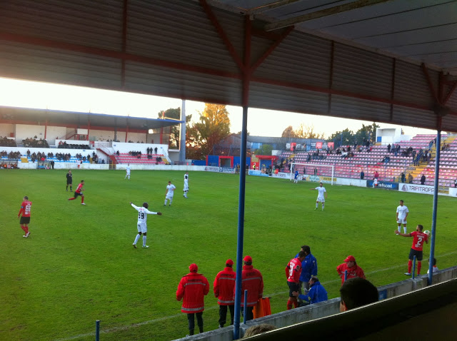 A tarde estava boa para praticar futebol na Trofa. Talvez uns 500 espetadores e uma claque com muita animação e cor.